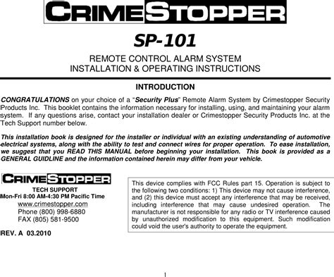 Download online CRIMESTOPPER SP 101 MANUAL PDF Doc